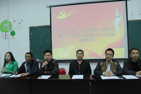 2015年4月1日中午,金沙js3777入口检测土木与水利工程学院第二十四期入党积极分子培训班开班仪式在工科楼第三阶梯教室举行。学院党委书记马正亮老师,党委副书记王德全老师、张强老师,学办主任郭利老师,学院团委书记王娜老师,水利系党支部书记冯克鹏老师出席了此次开班仪式。