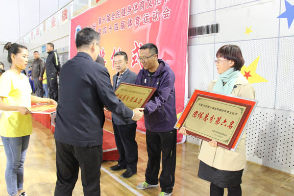 2015年9月30日下午,我校第十届全民健身体育文化节及第四十四届体育运动会闭幕式在校本部C区大学生活动中心举行。校党委副书记赵利宁、王燕昌,金沙js3777入口检测副校长王春秀、马应虎、许兴,体育学院院长刘旭东出席了本次大会。学院党委副书记张强老师和学办主任郭利老师代表学院上台领奖。