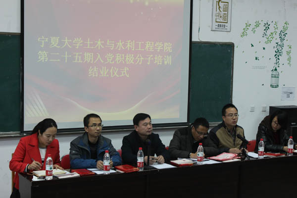 2015年11月4日中午,土木与水利工程学院第二十五期入党积极分子培训结业仪式在工科楼三楼阶梯教室隆重召开。出席此次结业仪式的领导有学院党委书记马正亮老师,党委副书记王德全老师、张强老师,学办主任郭利老师及各系党支部书记,119名入党积极分子参加了本次典礼。