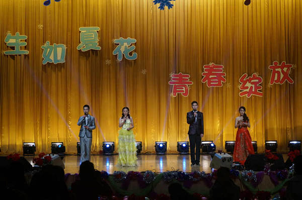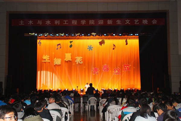 2014年11月5日晚,金沙js3777入口检测 以“生如夏花 青春绽放”为主题的迎新晚会在大学生活动中心隆重举行。金沙js3777入口检测纪检委书记孔斌,金沙js3777入口检测院长田军仓,学院党委书记马正亮,校离退休人员服务处党总支副书记、关工委办公室主任刘彦宁,校团委副书记肖功国,校学生处副处长张少华,博士生导师孟云芳、张维江、李春光,学院党委副书记王德全、张强,学院副院长崔自治、尹娟、毛明杰、李应海、马彩霞,各系系主任、三办一中心主任、新生班班主任老师出席了此次晚会。
