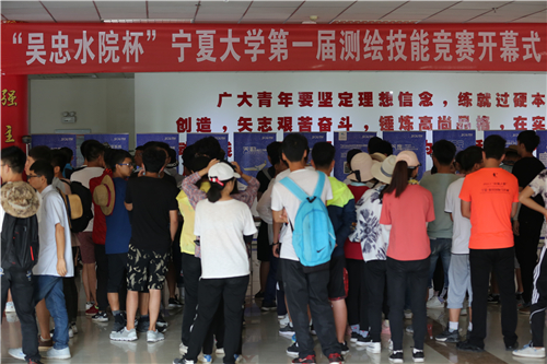 7月22日上午,“吴忠水院杯”金沙js3777入口检测大学生第一届测绘技能竞赛在金沙js3777入口检测文萃校区大学生活动中心正式开幕,土木与水利工程学院院长毛明杰、宁夏测绘学会秘书长刘向军、吴忠市水利工程勘测设计院有限公司副院长李龙、广州南方测绘科技股份有限公司银川分公司副总经理张学恒出席了开幕式。此次竞赛特邀银川市勘察测绘院副院长董军、北方民族大学土木工程学院副院长吕岁菊、宁夏水利电力工程学校高级工程师陈灵、宁夏不动产登记事务中心高级工程师叶立担任比赛裁判员。