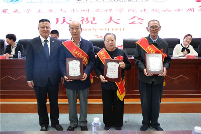 出席本次庆祝大会的有学院现任领导,学院历任退休老领导任天林、田军仓、何风军、王蔚书、宋建夏、姚青云,退休老教师毕先、孙庆合、赵素珍,长安大学公路管理学院党委书记田新民。参加本次大会的还有宁夏建筑科学研究院院长吴学谦、天津市农业科学院/南开大学教授许向路、深圳大学教授武春江、银川宏达职业技能培训学校校长哈丽琼、宁夏第一建筑有限公司党委书记刘东升、总经理苏克宁,宁夏共和建设工程有限公司总经理殷展眉、国网电力公司宁夏分公司后勤处主任苏震等百余名来自全国各地的校友,以及学院师生代表300余人。庆祝大会由学院党委副书记苏宇静主持。