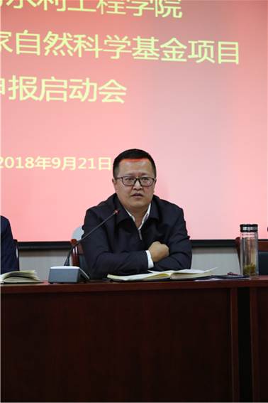 2018年9月21日下午,土木与水利工程学院2019年国家自然科学基金项目(以下简称国基金)申报启动会在文萃校区知行楼五楼报告厅举行。启动员会由学院党委书记高继明同志主持,科技处处长李学斌、学院院长毛明杰、副院长刘海峰出席了会议,学院部分教职工参加了此次会议。