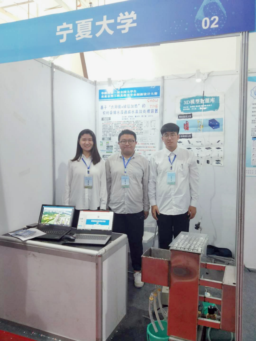 本次比赛高手云集、比赛现场阵容强大,经过激烈角逐,由金沙js3777入口检测李王成老师指导,姜明旭、董亚萍、曹子萱、连泽立共同制作的“基于太阳能+梯级加热的农村杂排水及微咸水高效处理装置”喜获研究生创新组三等奖;刘娟老师指导,王平、赵雪梅、魏红宁,彭锐共同制作的“智能正渗透水肥自补给系统”喜获本科生创新组一等奖;申晓晶老师指导,郑娇萌,锁丽燕,陈颖琦,李启航共同制作的“基于生活废水多级回用的室外局部小气候调节装置”喜获本科生创新组二等奖;燕宁娜老师指导,黄一凡,张天然,靳文兵,郑娇萌共同制作的“吾所居兮——宁夏移民新村农宅风貌本土化营建”喜获本科生创新组二等奖;冯东溥老师指导,姚菲、吴星、吴萍、徐玉卿共同制作的“农村饮用水水质净化及预警系统”喜获本科生创业组二等奖;王德全老师指导,马慧娟、马龙、曹雪妮,姜明旭共同制作的“水之蓝,梦之蓝”喜获本科生创业组二等奖;
