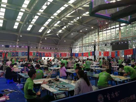 本次竞赛聚焦国家西部开发和“一带一路”倡议、积极服务区域发展需求,具有鲜明的时代特点与国情特色,以《山地输电塔模型设计与制作》这一命题为出发点,比赛要求参赛队员经过累计16小时的现场模型制作,在经专家打分、叙述答辩等环节后,针对静载、随机选位荷载及移动荷载等多种荷载工况下的空间结构进行受力分析、模型制作及试验,并现场抽签决定加载工况,具有不确定性,极具挑战性,更具工程针对性与综合考察性。