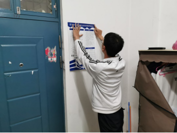 宿舍信息栏由《宿舍管理办法(节选)》、温馨提示和宿舍卫生值日表三个部分组成,充分体现学院加强宿舍管理的决心,同时,也有效解决了各类文件在墙上张贴显得凌乱的问题。宿舍信息栏还将“土水年华”微信和抖音二维码、“学苑管家”小程序二维码展现在外,拉近了同学们与学院和公寓的管理的距离。