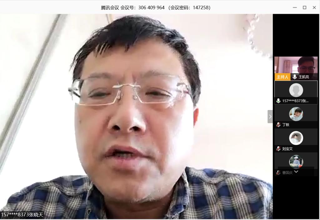 张晓天代表学院党政向班级同学表达了慰问。他提到,同学们今天对爱国和疫情的认识都很深刻,并讲述了自己对爱国主义的理解,他要求同学们要把握住线上学习的机会,扎实掌握学业知识,同时也要按照疫情防控要求,做好个人防控,从官方媒体等主渠道了解疫情防控工作,当好宣传员。
