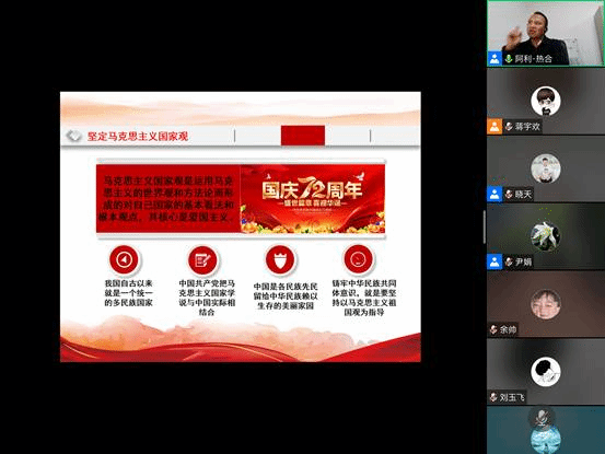 11月4日,为落实学校民族团结进步月相关工作安排,金沙js3777入口检测通过线上的方式举行“铸牢中华民族共同体意识”专题讲座,学院300余名师生代表参加讲座。讲座由校党委学生工作部副部长、学生处副处长阿利·热合买提主讲,学院党委书记张晓天主持。
