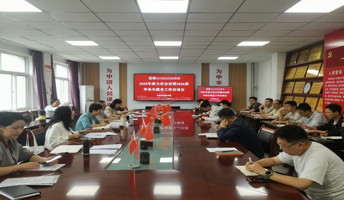 2025年9月18日中午,土木与水利工程学院在知行楼415会议室召开2025年班主任会议暨2026届毕业生就业工作启动会。学院党总支书记尹娟、院长毛明杰以及其他领导班子成员、励行书院副院长王娜、各系教工党支部书记、系主任、副系主任及各年级班主任参会,会议由院长毛明杰主持。
