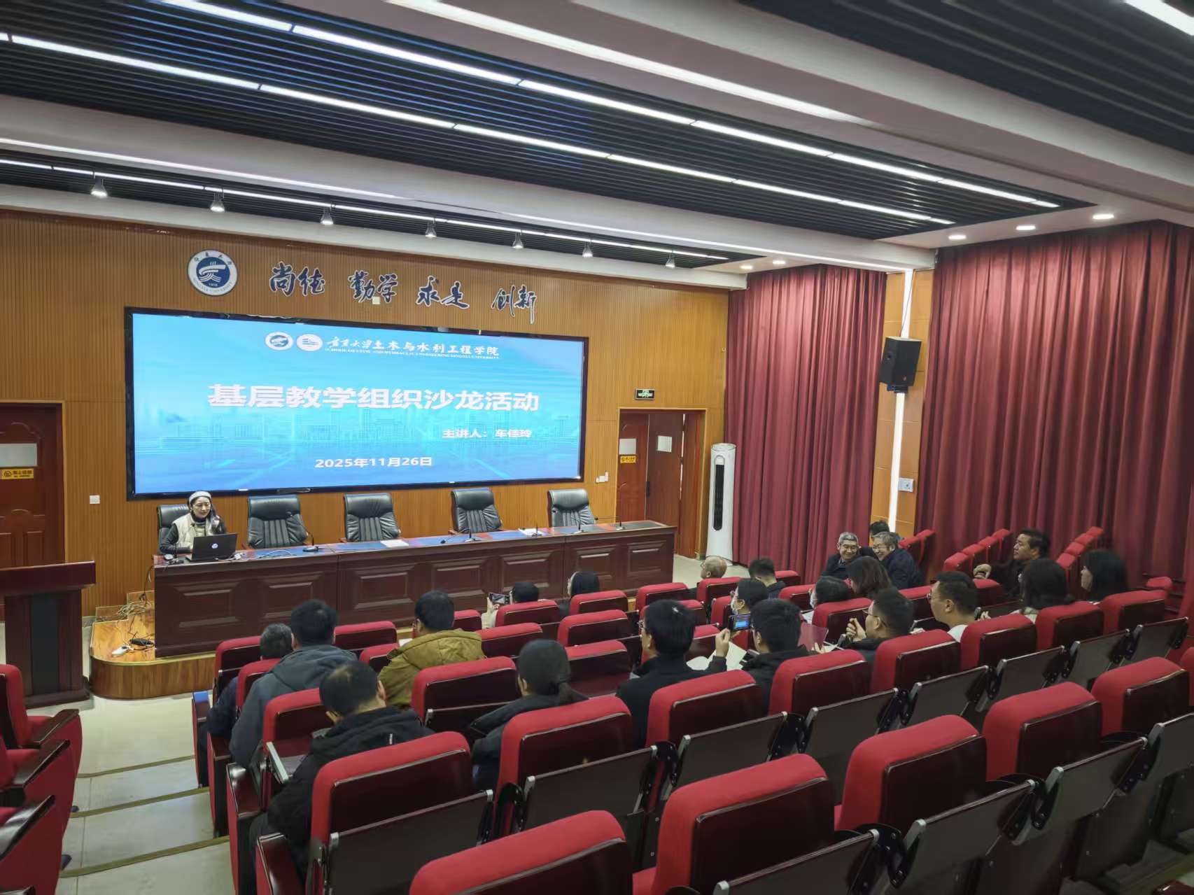 2025年11月26日,由金沙js3777入口检测土木水利工程学院土木工程系主办的基层教学组织(岩土与力学教研室)沙龙在知行楼三阶梯教室顺利举行。土木工程系车佳玲教授应邀作《AI赋能教育与智能建造创新发展》专题报告,来自土木工程、水利工程、道路桥梁与渡河工程系的30余名教师代表参与研讨。整场活动交流热烈,学术氛围浓厚。